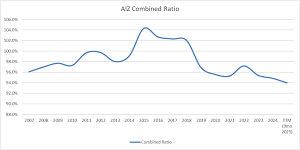 These transactions, which took place between 2016 and 2021, reshaped Assurant Inc. While revenues from premiums remain roughly the same, the company is now more concentrated in segments where it has clear competitive advantages and a healthier level of profitability. The combined expense ratio has improved, dropping from roughly 100% of premiums to around 95%, indicating a more efficient operation.
