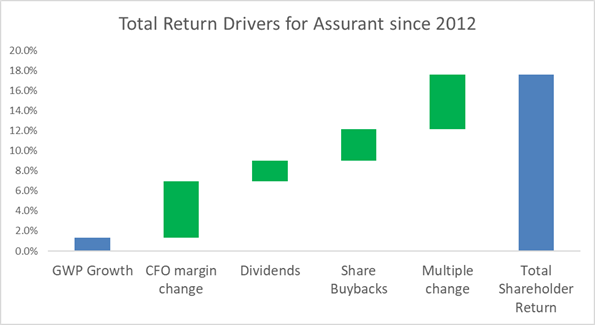 Regarding the shareholder return drivers which I’ve illustrated in the chart below, margin expansion and shareholder returns have been the primary source of value creation over the last decade. Growth in premiums is relatively pedestrian at 2%, but the M&A transactions obscure it. The core segments of extended warranty and global housing have grown steadily, averaging 4% per year since the acquisition of The Warranty Group. Capital allocation is once again value-accretive, with an average dividend yield of 2% and annualized share buybacks of around 3% since 2012.